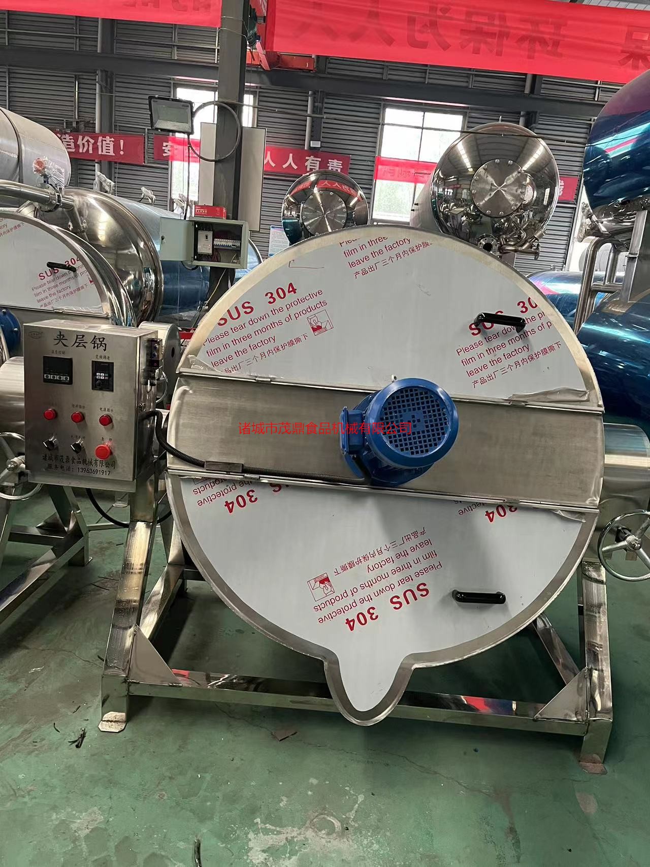 立式夾層鍋主要由鍋體和撐腳組成;鍋體是由內外球形鍋體組成的雙層結構形式,中間夾層通入蒸汽加熱。