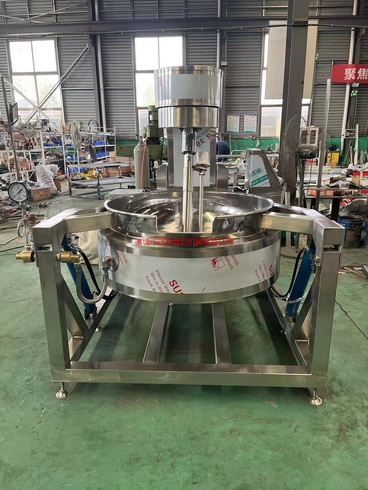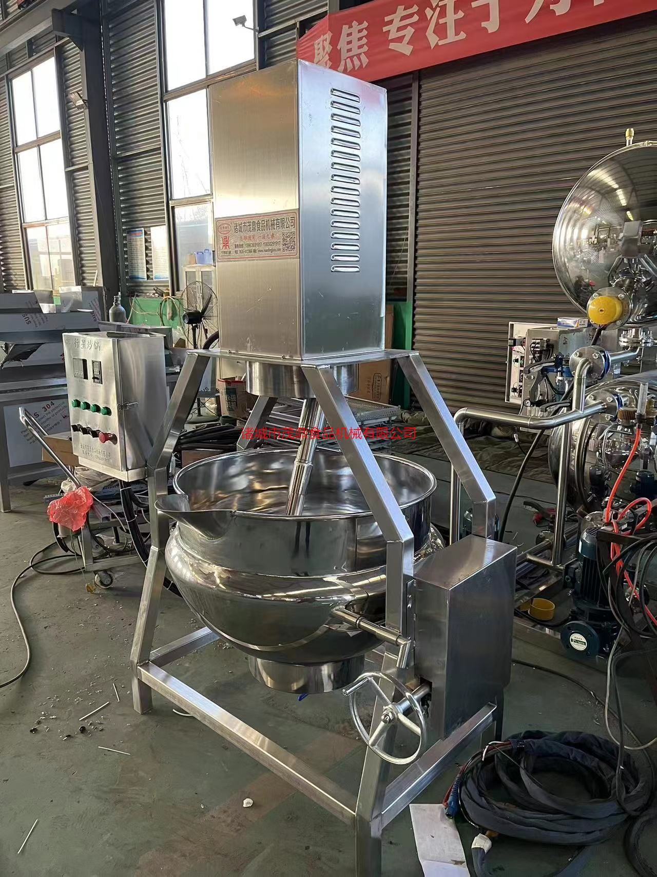 行星攪拌炒鍋主要由鍋體、架體、攪拌系統、加熱系統、調速傳動裝置、攪拌軸、鍋體翻轉系統等組成。行星炒鍋加熱方式可分為電加熱、燃氣加熱、蒸汽加熱、電磁加熱等方式。行星炒鍋適用于:火鍋底料、月餅餡料、高粘度物料、果醬、年糕、辣椒醬、食堂、阿膠、熬湯、豆蓉、豆沙、芝麻醬、五谷豆漿、方便面醬料、香菇醬等食品加工攪拌炒制。行星炒鍋采用不銹鋼制作,攪拌徹底、無死角、攪拌均均、不易糊鍋。攪拌器和刮板結構設計獨特,物料攪拌混合更均勻,刮底更徹底,不容易產生糊鍋現象。