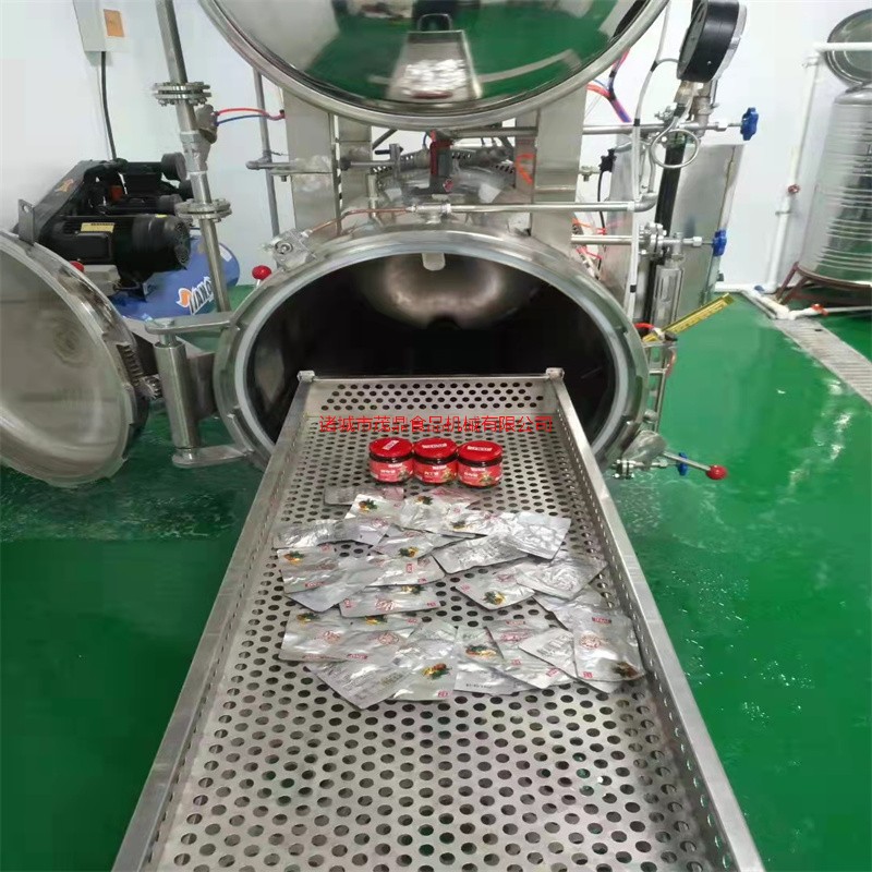 殺菌鍋以有一定的壓力的蒸氣為熱源,具有受熱面積大,熱效率高、加熱均勻、液料沸騰時間短、加熱溫度容易控制等特點。本鍋內層鍋體(內鍋)采用耐酸耐熱的奧氏型不銹鋼制造,配有壓力表和閥門,外型美觀、安裝容易、操作方便、穩定可靠。殺菌鍋的作用是使食品等在密閉的環境下,接受升溫、保溫、降溫三個過程,對食品進行高溫短時間殺菌或滅菌,既殺滅食品中可能的致病菌,又保持食品的重要營養成份及食品的色香味不受損害。并配有壓縮空氣管系,以壓縮空氣的反壓力作用,確保產品在滅菌后的包裝使用要求,為延長食品的保存期。