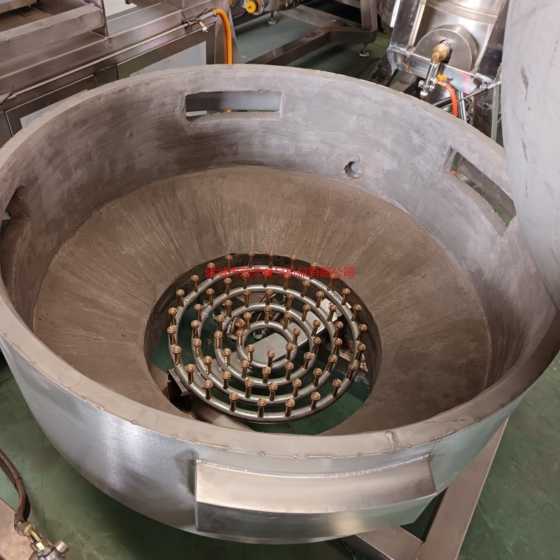 行星攪拌炒鍋主要由鍋體、架體、攪拌系統、加熱系統、調速傳動裝置、攪拌軸、鍋體翻轉系統等組成。行星炒鍋加熱方式可分為電加熱、燃氣加熱、蒸汽加熱、電磁加熱等方式。行星炒鍋適用于:火鍋底料、月餅餡料、高粘度物料、果醬、年糕、辣椒醬、食堂、阿膠、熬湯、豆蓉、豆沙、芝麻醬、五谷豆漿、方便面醬料、香菇醬等食品加工攪拌炒制。行星炒鍋采用不銹鋼制作,攪拌徹底、無死角、攪拌均均、不易糊鍋。攪拌器和刮板結構設計獨特,物料攪拌混合更均勻,刮底更徹底,不容易產生糊鍋現象。