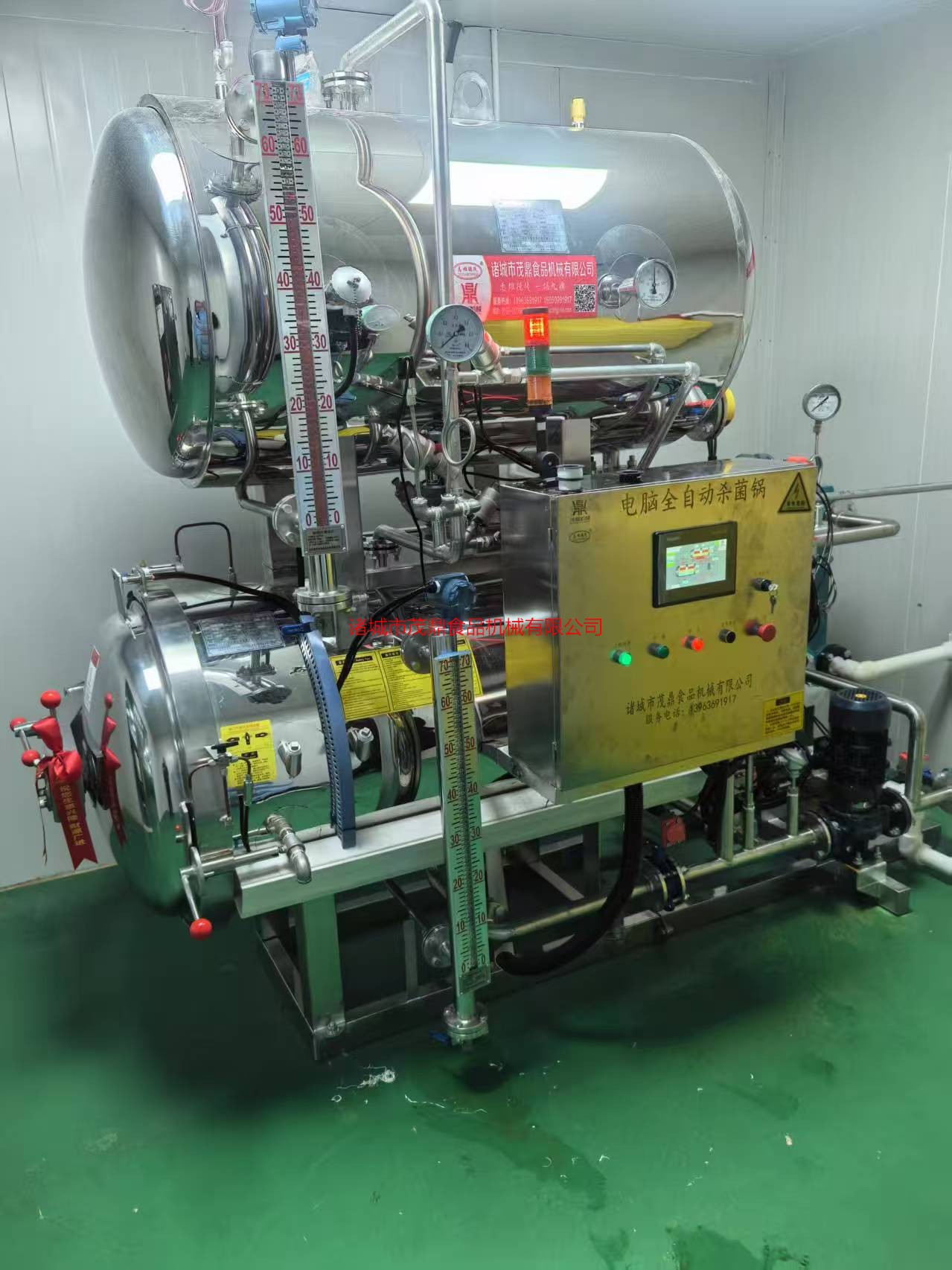 殺菌鍋以有一定的壓力的蒸氣為熱源,具有受熱面積大,熱效率高、加熱均勻、液料沸騰時(shí)間短、加熱溫度容易控制等特點(diǎn)。本鍋內(nèi)層鍋體(內(nèi)鍋)采用耐酸耐熱的奧氏型不銹鋼制造,配有壓力表和閥門,外型美觀、安裝容易、操作方便、穩(wěn)定可靠。殺菌鍋的作用是使食品等在密閉的環(huán)境下,接受升溫、保溫、降溫三個(gè)過(guò)程,對(duì)食品進(jìn)行高溫短時(shí)間殺菌或滅菌,既殺滅食品中可能的致病菌,又保持食品的重要營(yíng)養(yǎng)成份及食品的色香味不受損害。并配有壓縮空氣管系,以壓縮空氣的反壓力作用,確保產(chǎn)品在滅菌后的包裝使用要求,為延長(zhǎng)食品的保存期。