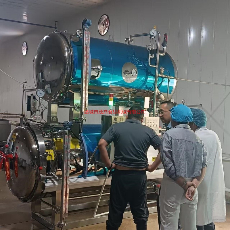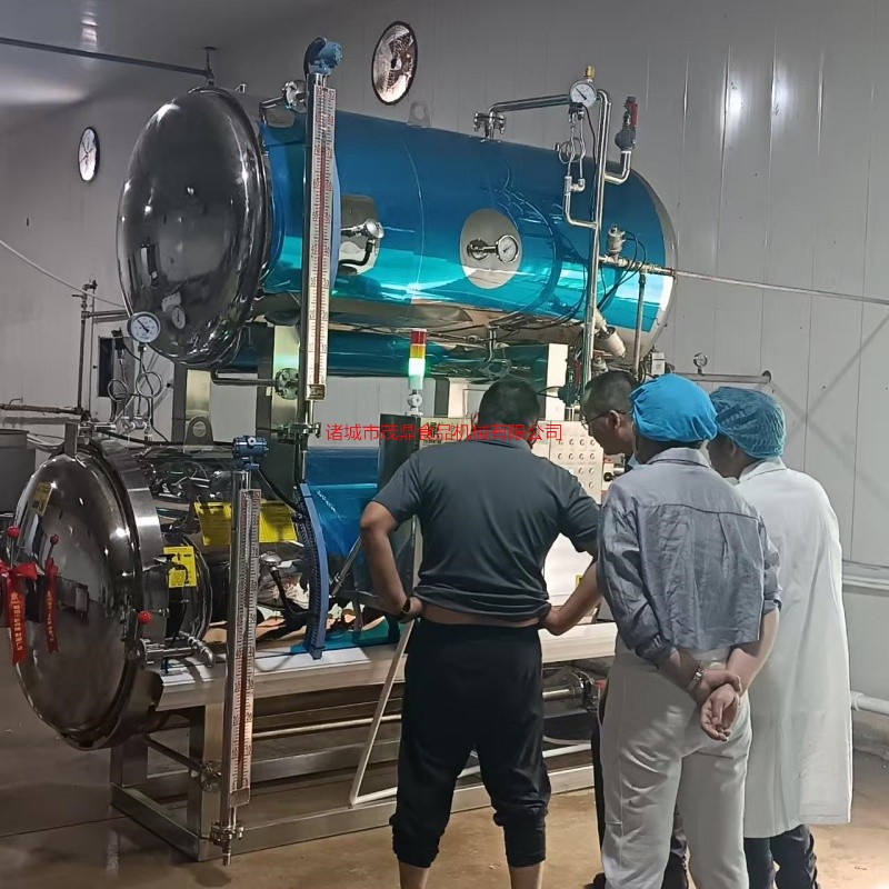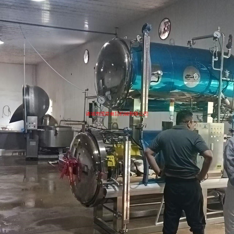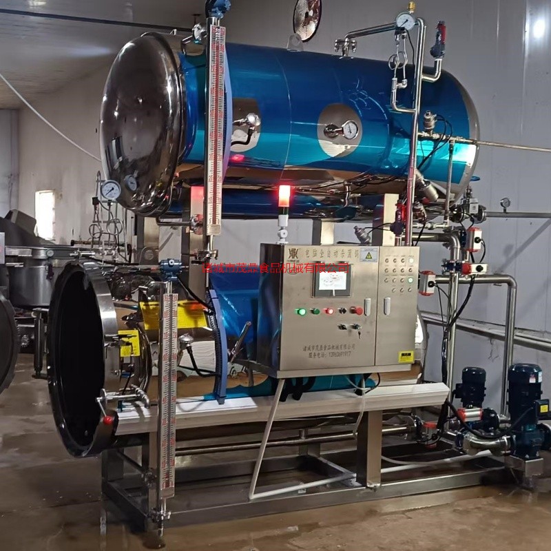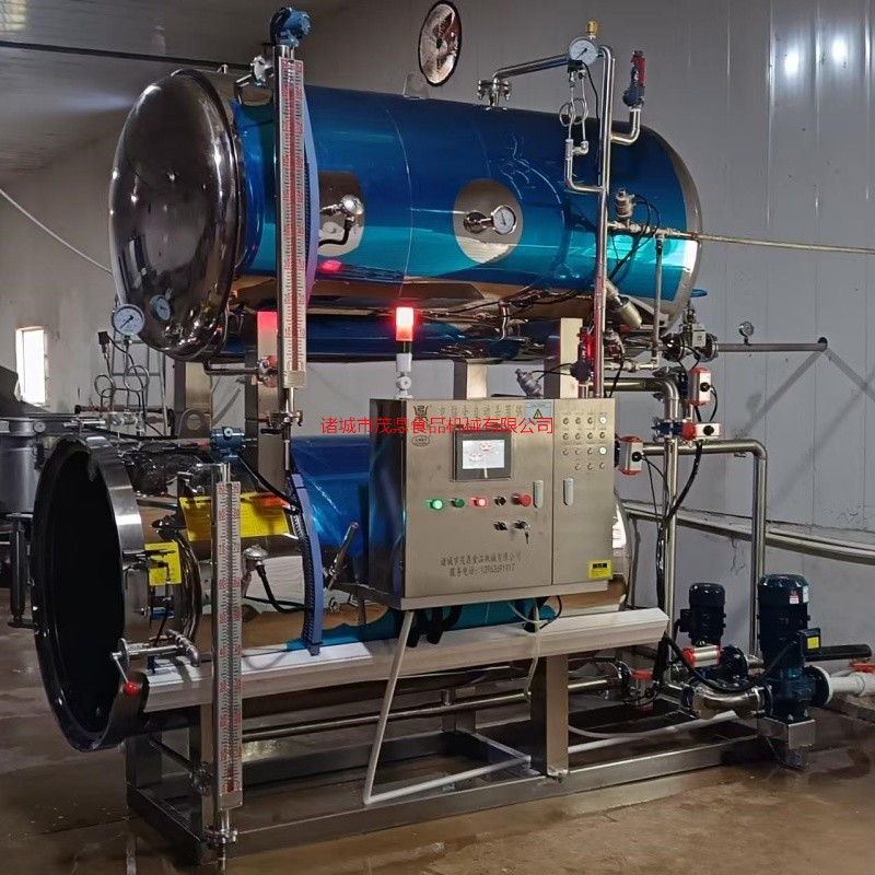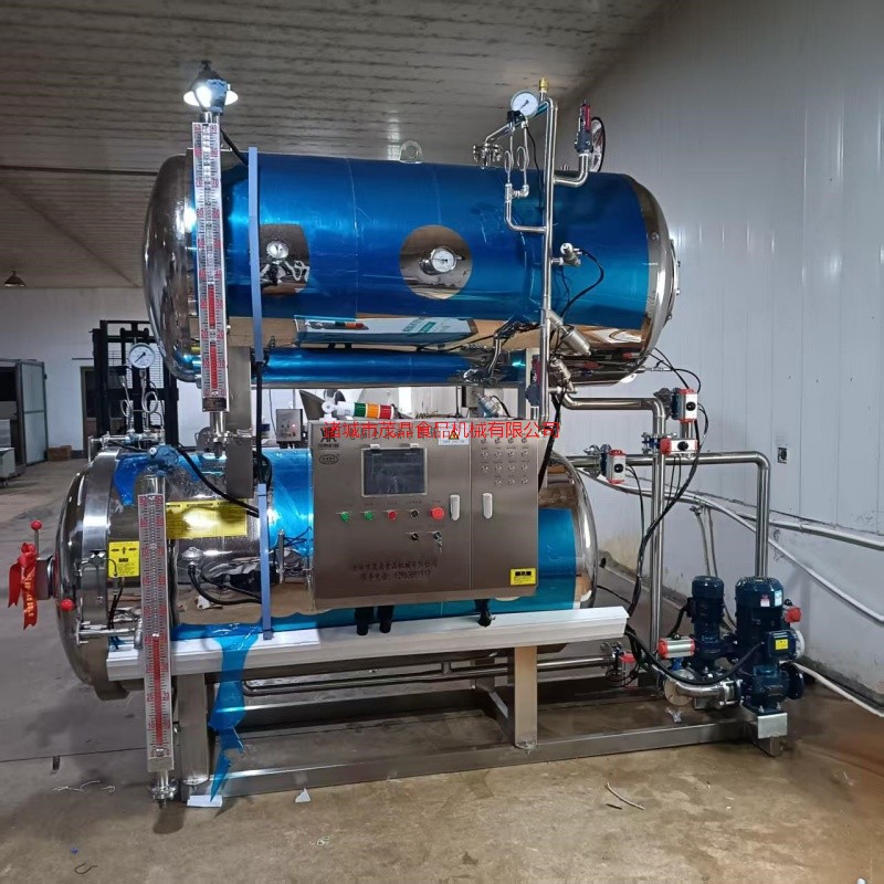 雙層水浴殺菌鍋對于熱敏性食品的殺菌非常有用,對于大包裝食品,熱穿透速度快,能確保良好的殺菌效果。殺菌水首先在上罐中預熱到設定溫度,殺菌溫度起點高,可有效縮短殺菌時間,尤其對于熱包裝的食品,能大程度保留食品原有的口感、色澤和營養價值。殺菌結束后殺菌水可回收到上罐供下批次食品殺菌用,節約能源,縮短殺菌周期。