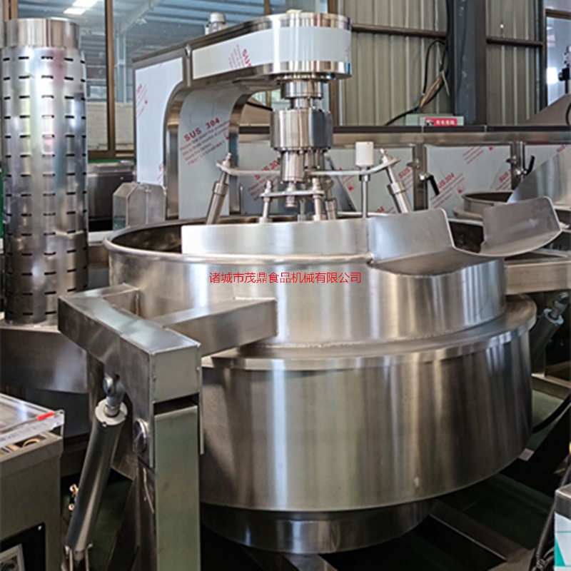 茂鼎大型底料醬料中央廚房攪拌炒鍋 油辣椒燃氣炒鍋 熬糖化糖鍋加熱均勻無死角高位出料 可按需定制-行星攪拌炒鍋-殺菌鍋_夾層鍋_茂鼎機械—諸城市茂鼎食品機械有限公司