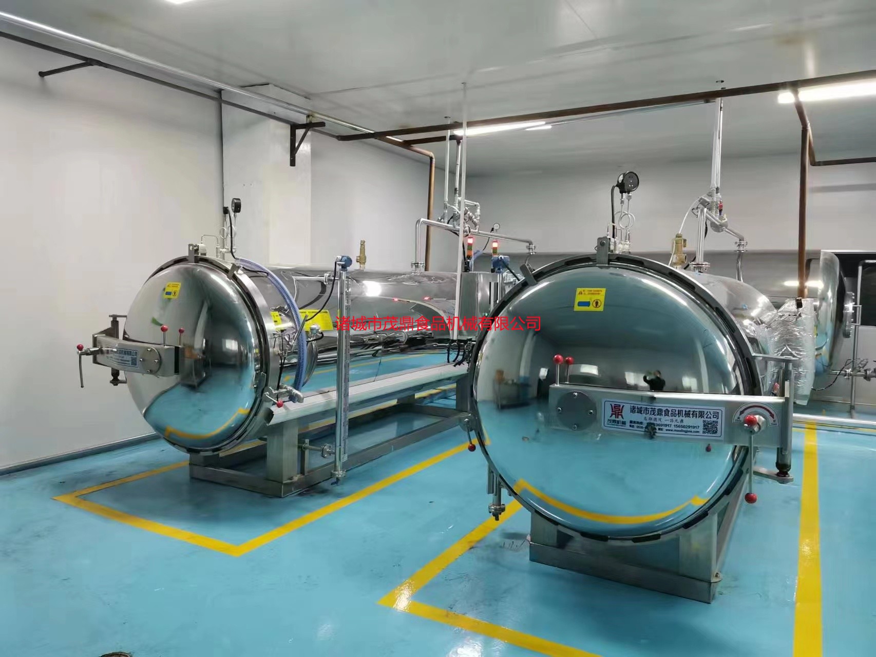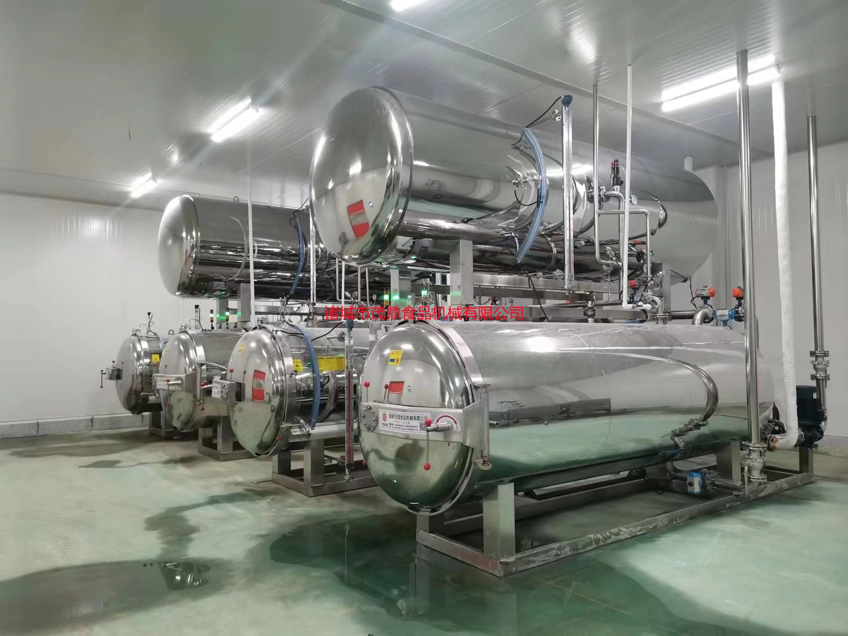 殺菌鍋由鍋體、鍋蓋、開啟裝置、鎖緊楔塊、安全聯鎖裝置、軌道、滅菌框、蒸汽噴灌及若干管口等組成。鍋蓋密封采用充氣式硅橡膠耐溫密封卷,密封可靠,使用壽命長。具有受熱面積大,熱效率高、加熱均勻、液料沸騰時間短、加熱溫度容易控制等特點。雙層殺菌鍋比單層殺菌鍋效率提高一倍,節約能源和殺菌時間,適用于一天多次殺菌的食品廠家。在殺菌過程中,應注意最初排氣,進而泄氣,使蒸汽流通。亦可每各10 分鐘放氣一次,促進熱交換。總之必須滿足殺菌條件的規定,按一定程序進行,殺菌溫度的高低,殺菌壓力的大小,殺菌時間的長短和操作方法等均由不同產品的殺菌工藝作出具體規定。