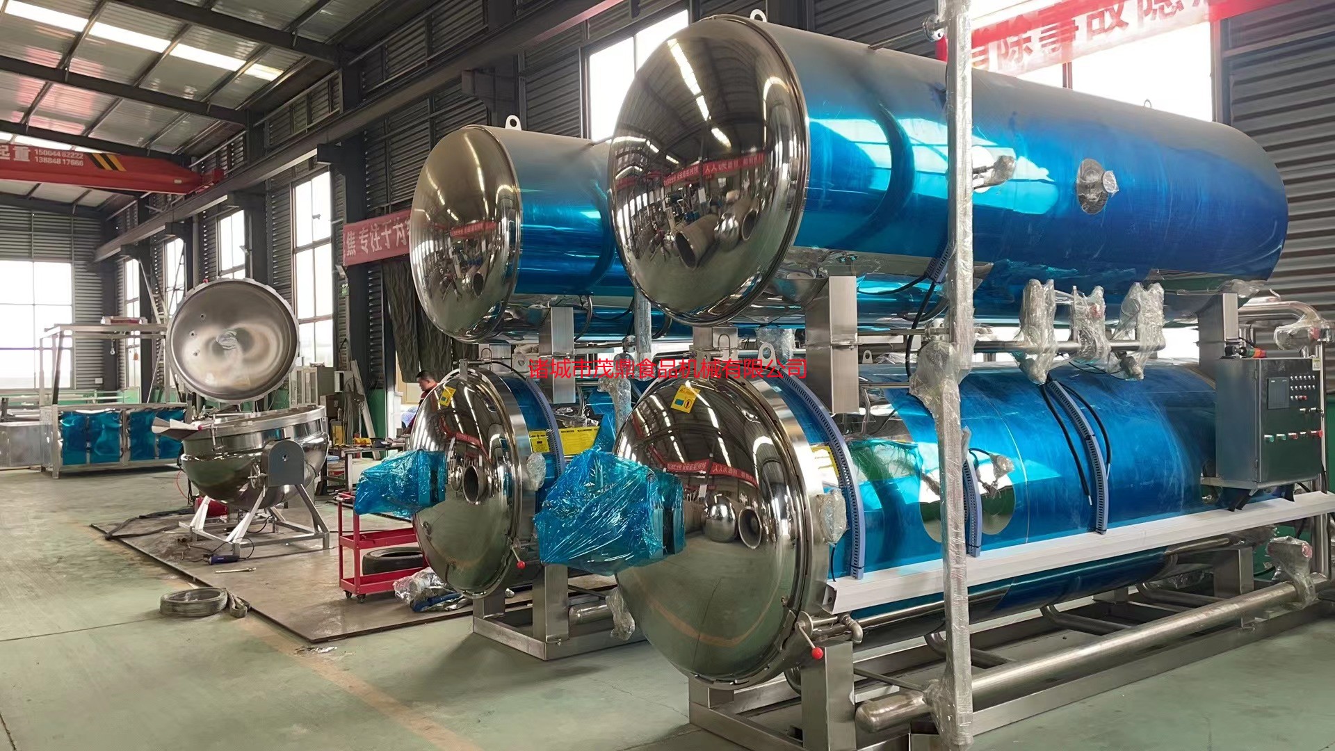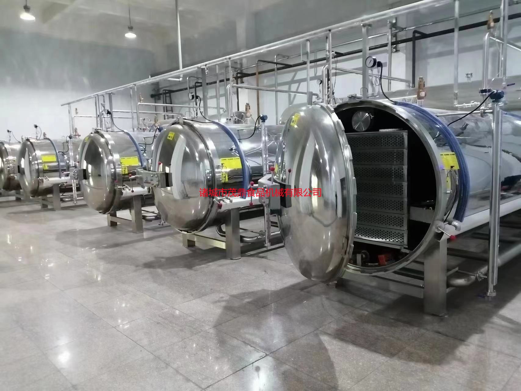 殺菌鍋設備裝有排汽管、進水管、安全閥、壓力表、溫度計、排水管、排氣閥、液位計、電加熱棒、盛裝小車。加熱層有保溫材料,設計時考慮到傳熱面積和換熱效果達到規定殺菌要求,勞動強度低,生產效率高等優點。用戶可根據實際需求選用電加熱殺菌鍋和蒸汽加熱兩種殺菌方式。殺菌鍋具有節能效果好,生產力高,溫度顯示自動控制,調節范圍廣,控制精度高,耐腐消聲,清洗方便等優點。