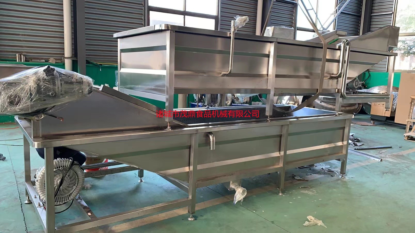 特性及用途:1、設備除電機、軸承等標準件外均采用不銹鋼SUS304材料制作,完全符合出口食品衛生要求。設備中設有氣泡發生裝置,使物料呈翻滾狀態,去除產品表面農殘的功效,同時可加入適量的藥劑,進行消毒固色。漂浮物可以從溢流槽溢出,沉淀物從排污口排出,以達到清洗的目的。該設備在氣泡、沖浪、提升、噴淋等聯合工作下,具有洗潔凈高、節能、節水、設備穩定可靠能保持原有色澤等特點。是蔬菜、食品加工、餐飲等行業的理想設備。2、適用于:葉菜類、食用菌類、水果、水產品和中草藥等顆粒狀、葉狀、根莖類產品清洗、浸泡、殺菌消毒及固色等。3、本機輸送部分采用SUS304不銹鋼網帶,運行平穩、使用壽命長等特點,符合食品衛生要求。4、操作簡單,維修方便、方便連線