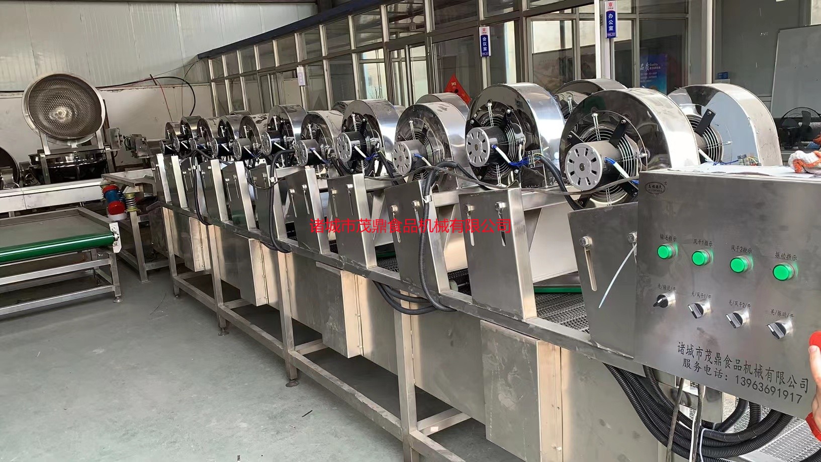 皺紋間的存水也能干)。此設備與殺菌機相連并速度同步,上面風機設為兩排,每臺風機功率:0.55KW(也可根據客戶要求用0.75KW的風機),設備環保節能。