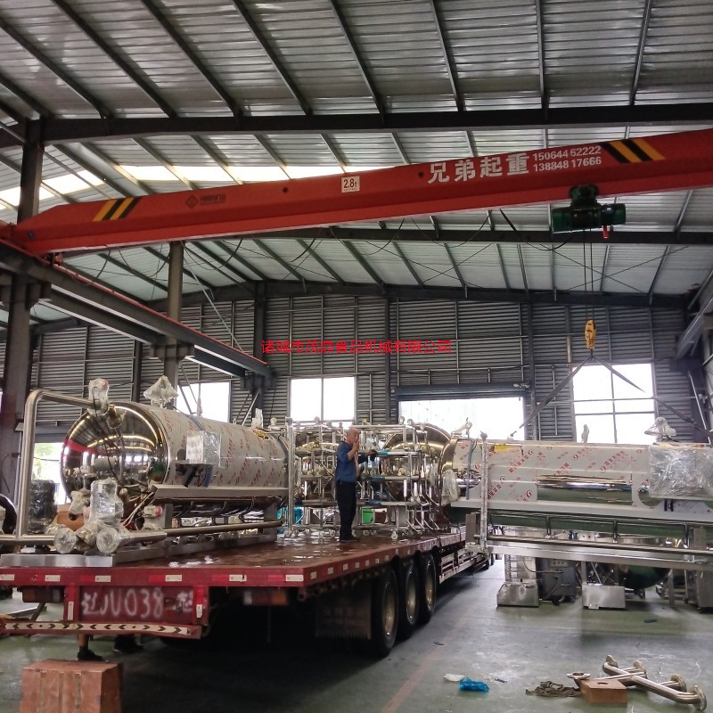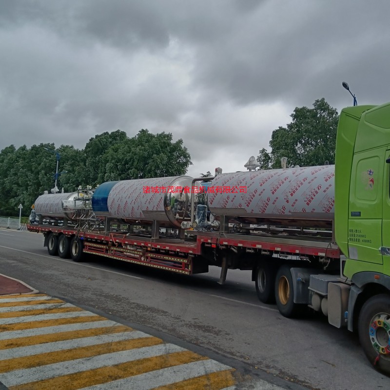 諸城茂鼎食品機械有限公司急客戶所急,周末不休息,兩套兩鍋一罐殺菌鍋發貨黑龍江,送貨上門免費上門安裝調試并培訓操作人員,教會為止。