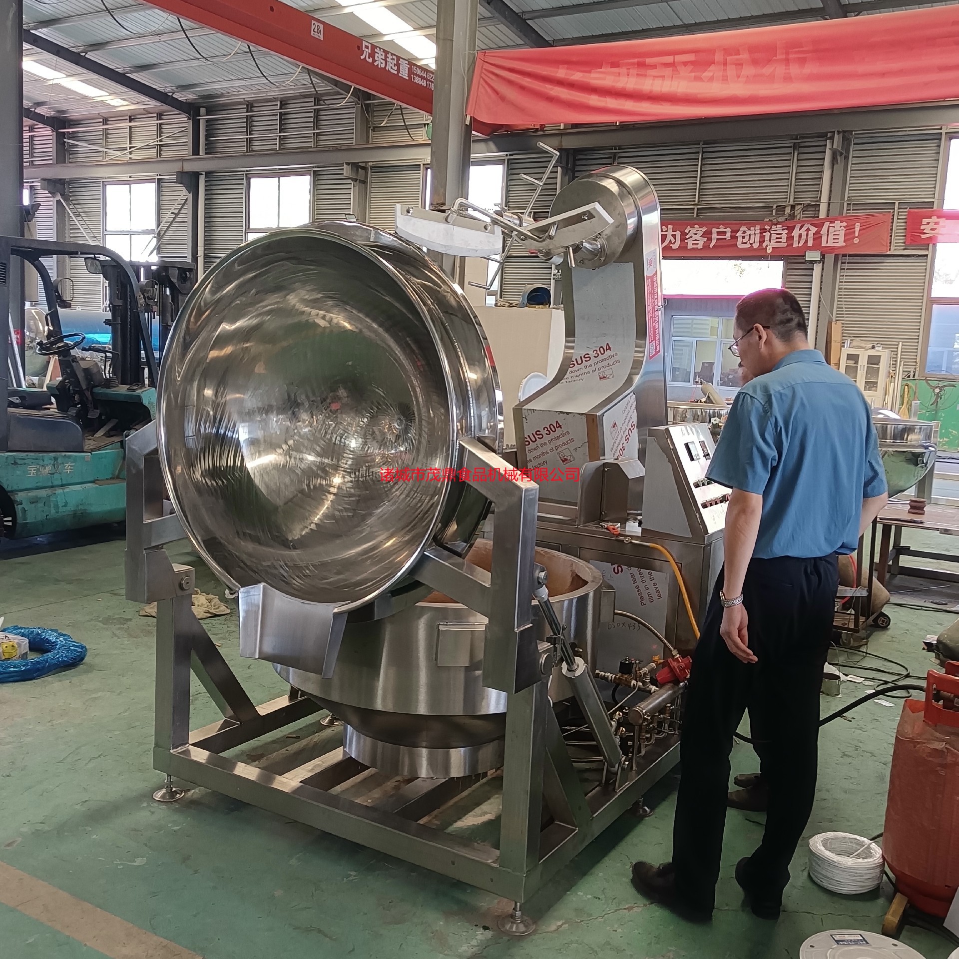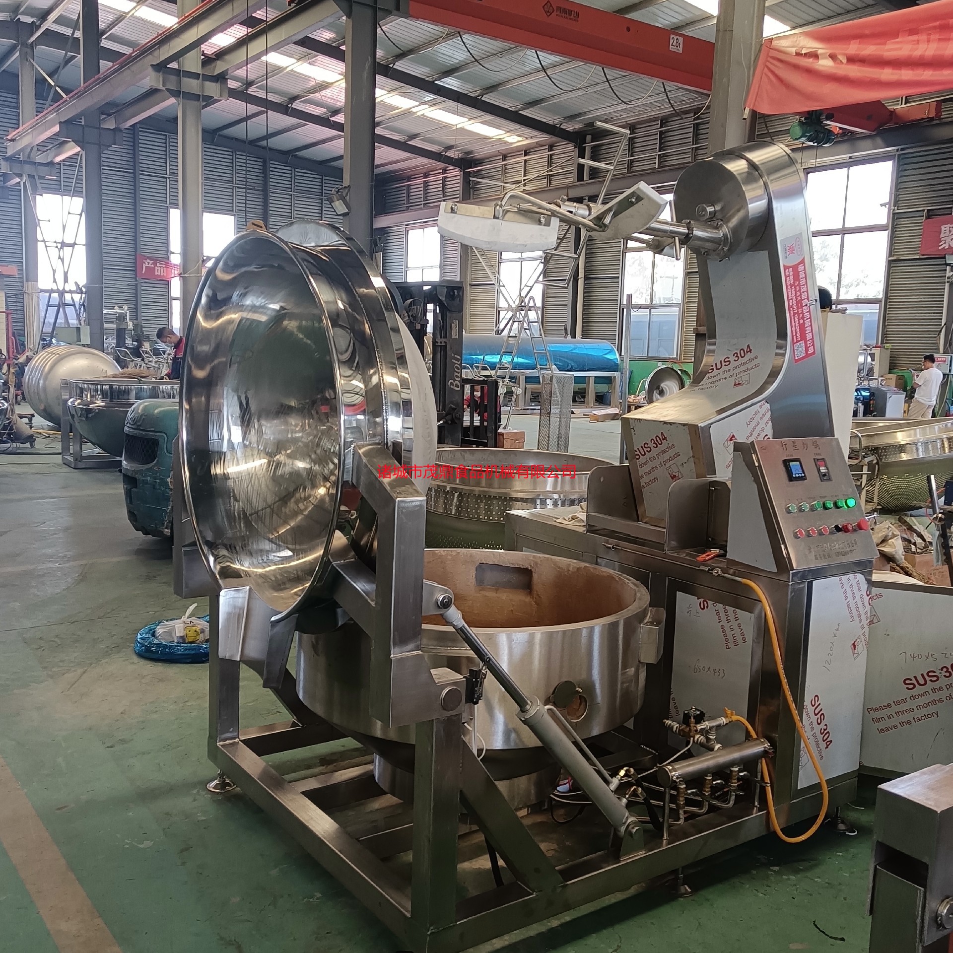 行星炒鍋具有受熱面積大,熱效率高的特點。安全性突出:本產品凡接觸食品部分皆為食品級SUS304不銹鋼制造。適合多種空間便于拆具有造型美觀、設計合理、結構緊湊、安裝方便、操作簡單、便于維修。攪拌方式卸:攪拌方式采用特殊的傾斜式傳動,使用的行星式攪拌器與鍋體充分接觸。攪拌系統采用自轉公轉相結合的方式,其傳動比為不整數傳動比,保證鍋內無任何攪拌盲點。干凈衛生:使用先進的傳動與密封結構,使傳動部分與鍋內潔凈、衛生。倒料方便輕松:該系列設備是利用液壓推力使攪拌臂翻轉,免拆裝攪拌器,再利用液壓推力傾翻鍋體,易于進出原料節省人力。