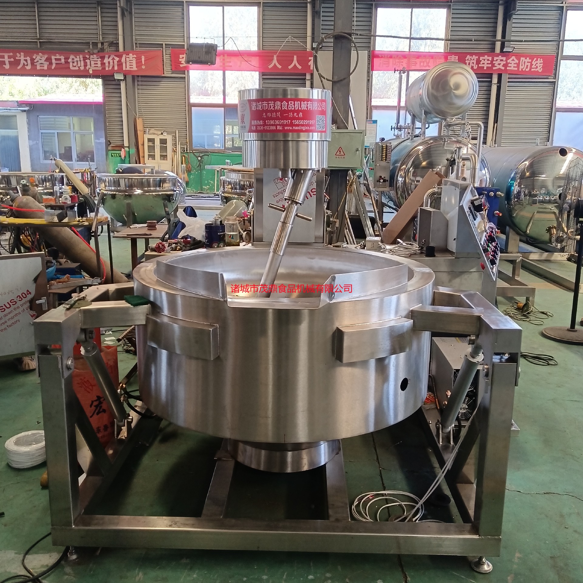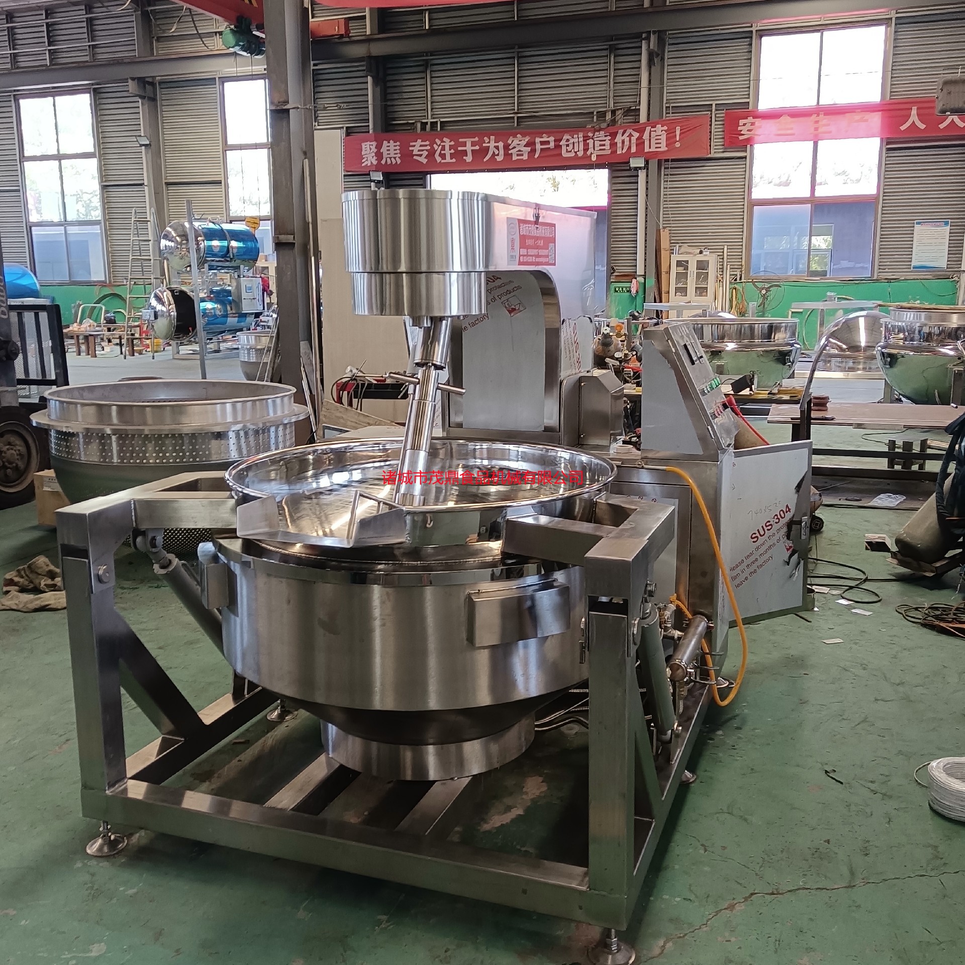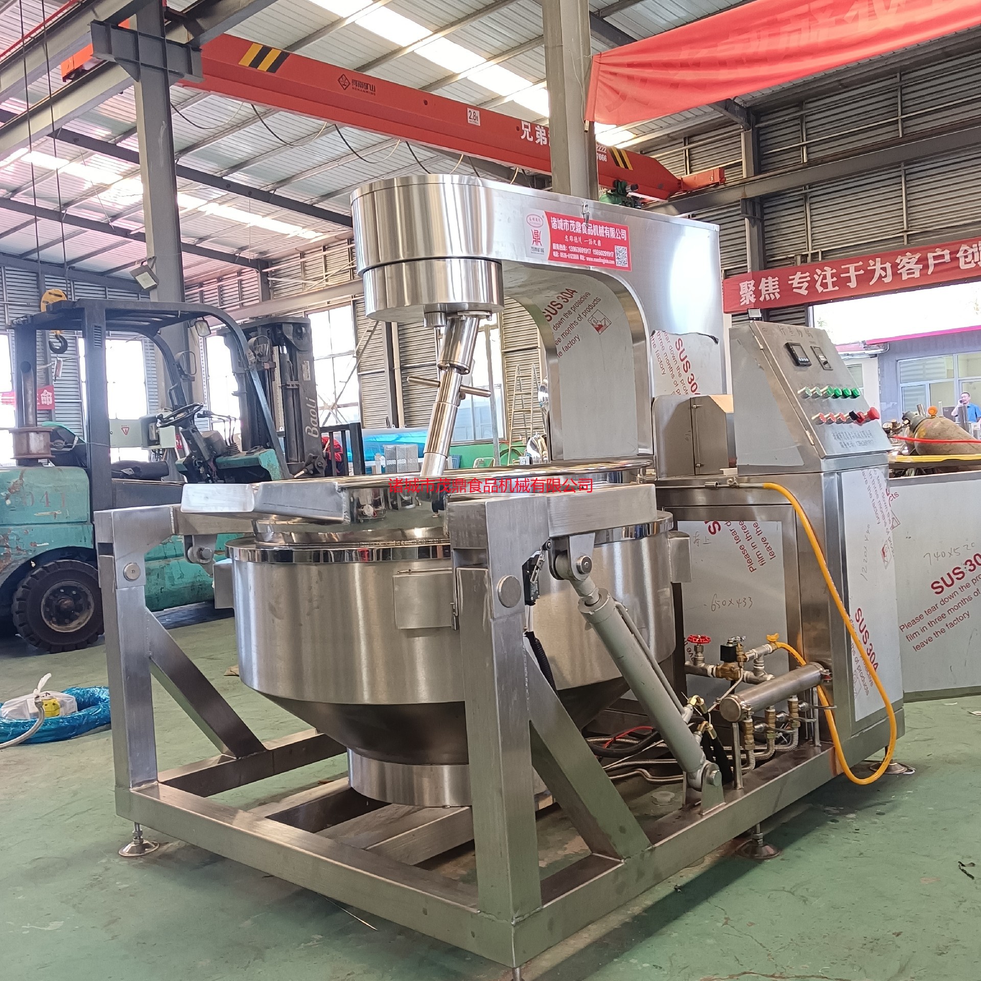 行星炒鍋適用于:火鍋底料、月餅餡料、高粘度物料、果醬、年糕、辣椒醬、食堂、阿膠、熬湯、豆蓉、豆沙、芝麻醬、五谷豆漿、方便面醬料、香菇醬等食品加工攪拌炒制。行星炒鍋采用不銹鋼制作,攪拌徹底、無死角、攪拌均均、不易糊鍋。攪拌器和刮板結構設計獨特,物料攪拌混合更均勻,刮底更徹底,不容易產生糊鍋現象。