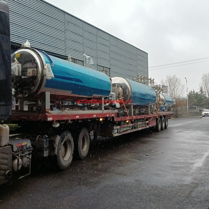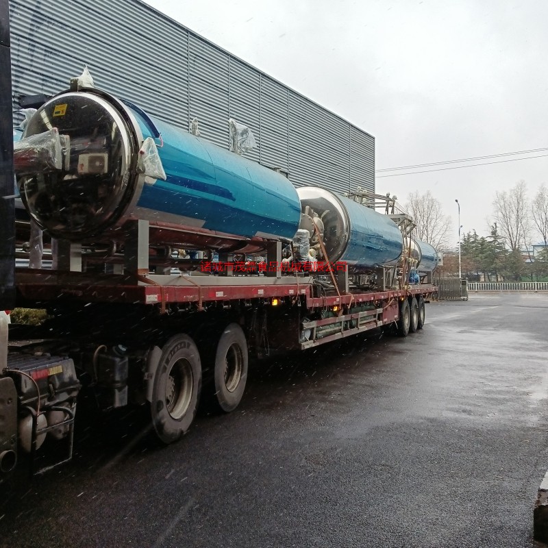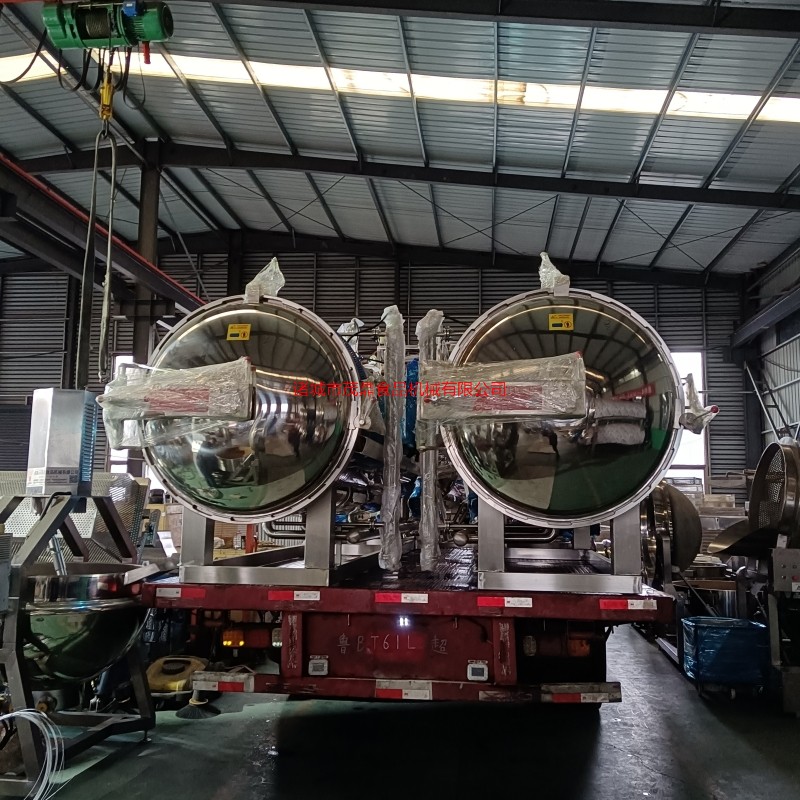 全自動雙鍋并聯式殺菌鍋發貨現場噴淋式殺菌釜水浴式殺菌鍋功能介紹-殺菌鍋-殺菌鍋_夾層鍋_茂鼎機械—諸城市茂鼎食品機械有限公司