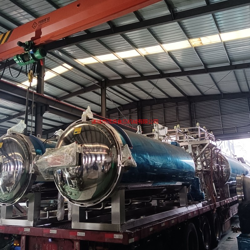 全自動雙鍋并聯式殺菌鍋發貨現場噴淋式殺菌釜水浴式殺菌鍋功能介紹