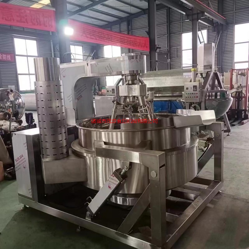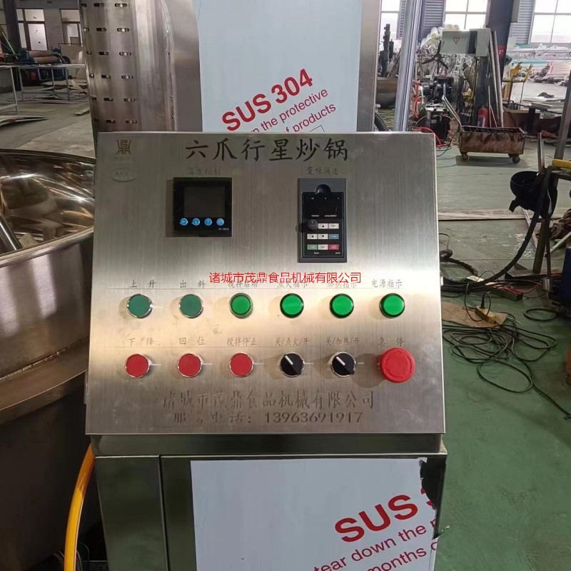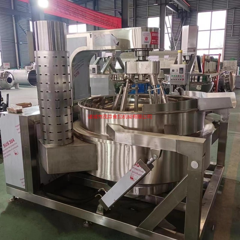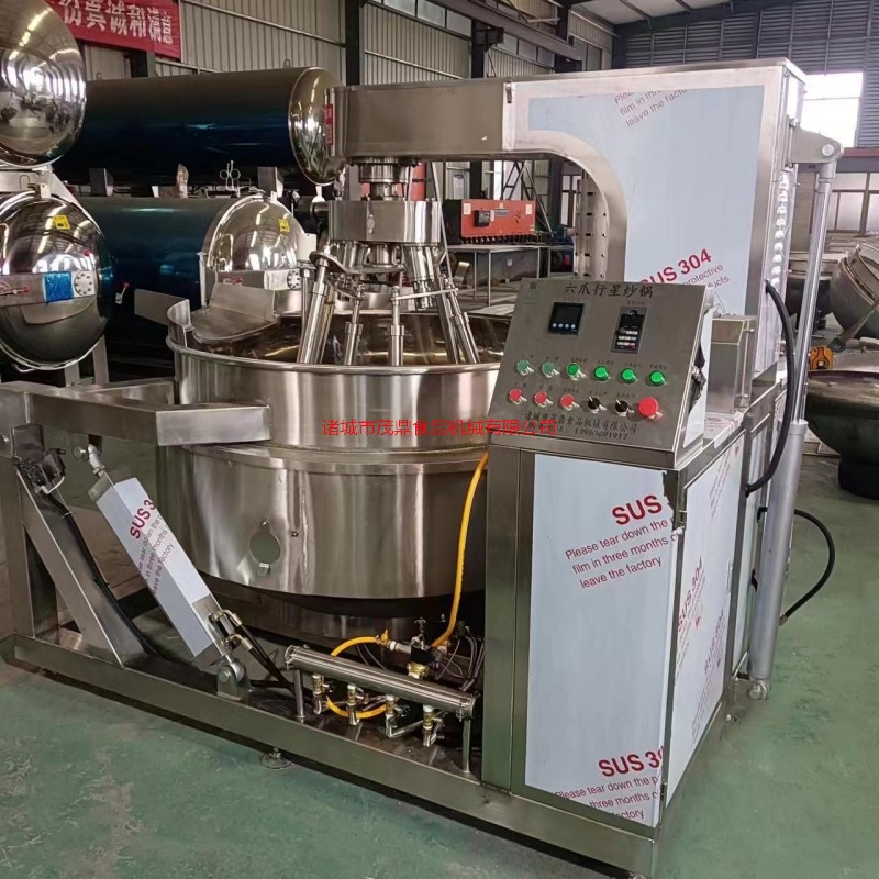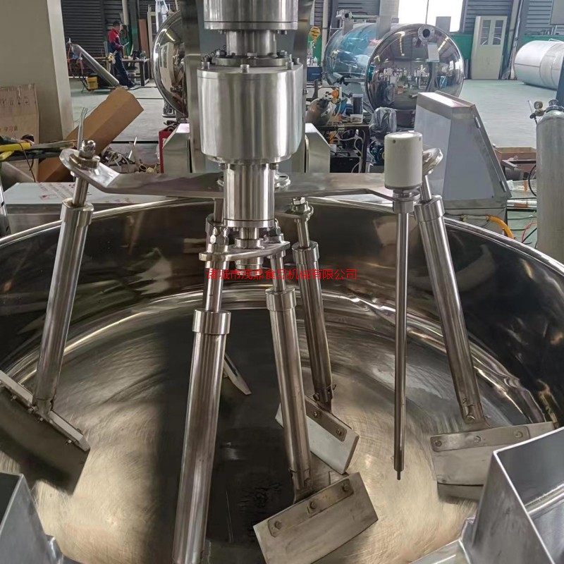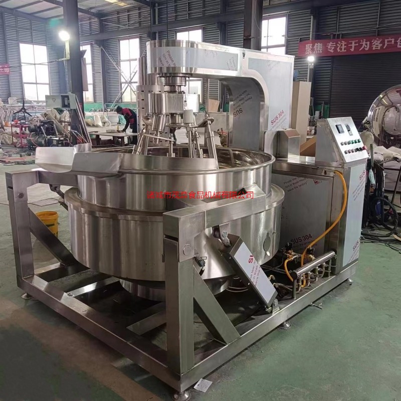 本產品鍋體為一次沖壓成型的半球不銹鋼鍋體,采用電磁加熱形式,攪拌形式采用特殊的傾斜傳動,使用的行星攪拌器與鍋體充分接觸,實現傳動公轉與密封結構,是傳動部分與鍋內潔凈、衛生。采用變頻調速動力,運行更平穩。電磁加熱形式打破了明火烹調方式,具有升溫快、無明火、無煙塵、無有害氣體,對周圍環境不產生熱輻射。安全性好和外觀美觀等特點,是性能優良的食品加工設備。